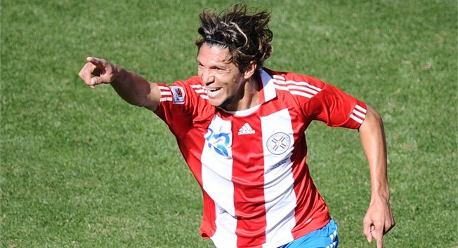 | Daisuke Matsui of Japan tackled by Enrique Vera of Paraguay |